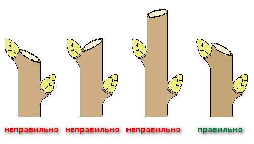 Al formar la corona, se realiza la poda sin dejar cáñamo. En el nivel inferior, quedan 3 ramas, en la segunda - 2 y en la superior una rama esquelética.
