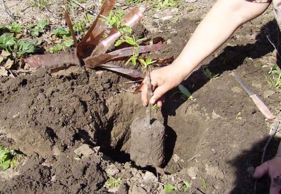 - cavar en el jardín: cavar una zanja, regar abundantemente, colocar plántulas y cubrir con tierra hasta la mitad del tronco;