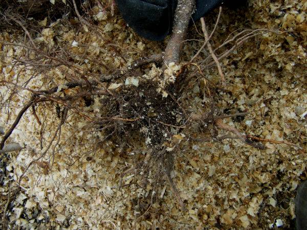 Las raíces de un manzano joven se bajan antes de plantar durante 4-24 horas en agua con un estimulante de formación de raíces, diluido según las instrucciones. Antes de esto, se realiza una revisión de las raíces, si es necesario, todas las raíces dañadas se cortan con una herramienta de corte afilada.