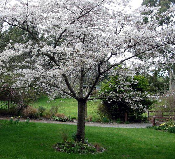 La forma de la copa es inversamente piramidal, y como no hay tantas ramas del árbol, la densidad de la copa se mantiene en un nivel medio. Inicio flores de ciruela con grandes flores blancas, 3 de cada brote, y una característica interesante es que las flores aparecen en las ramas antes que las hojas.