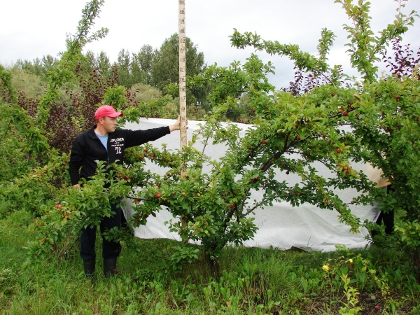 - El árbol no es muy alto, alcanza los 4 m, pero los representantes de esta especie con una altura de 3 a 3,5 metros se cultivan en huertos.
