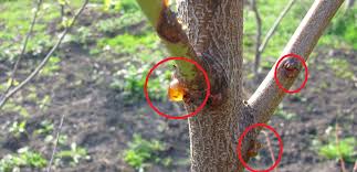 Para el tratamiento, la goma de mascar se limpia con un cuchillo de jardín, se desinfecta con sulfato de cobre y la herida se cubre con barniz de jardín.