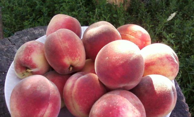 La variedad de melocotón Golden Jubilee da frutos en la primera quincena de agosto. La foto muestra que los frutos son de gran calidad. El rendimiento es amigable, los melocotones deben cosecharse dentro de una semana, de lo contrario se caerán. Los frutos maduros no se sujetan bien a las ramas.