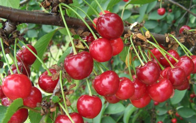 Las frutas de cereza Vianok se recogen en racimos, es muy conveniente quitarlas.