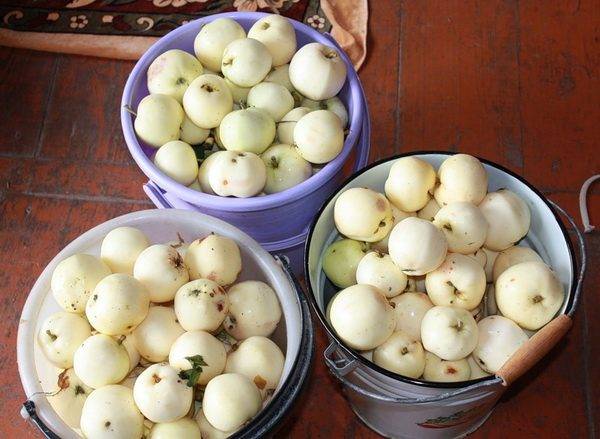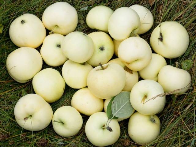 Su tamaño depende de la edad del árbol: cuanto más viejo es, más pequeños son los frutos. Los manzanos jóvenes te deleitarán con manzanas de hasta 200 g. En un árbol adulto, el peso medio de los frutos es de unos 100 g. El color de las manzanas cambia a medida que maduran: al principio son verdosas, luego se vuelven blancas, y después de colgar un poco, se llenan de jugo y prácticamente brillan. en la luz. Las manzanas de la variedad de relleno blanco maduran desde la última década de julio hasta la segunda década de agosto, dependiendo de la región de cultivo. La maduración de las manzanas es desigual, lo que permite recolectarlas de forma paulatina. Y esto es muy bueno, ya que la piel fina y la pulpa delicada no permiten que se almacenen por más de una semana, y con el menor daño, quedarán inutilizables en 3 días.
