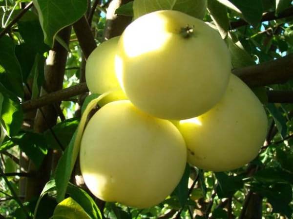 La principal ventaja de un manzano es su fruto. El relleno blanco no es una excepción. Estas deliciosas manzanas son amadas por todos los que las han probado.Alto puntaje de cata: 4.7 puntos es una confirmación de excelente sabor. La forma de las manzanas es redonda cónica.