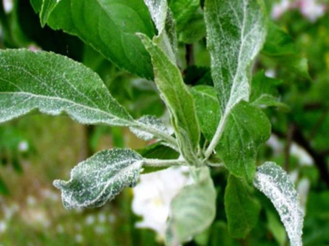 - mildiú polvoriento - una enfermedad fúngica que afecta a los brotes jóvenes, follaje de la manzana. La principal causa de la enfermedad son los cambios bruscos de temperatura (fuertes nieblas matutinas y sequía persistente). Los signos de daño en el manzano son la aparición de una flor blanquecina en el follaje, la caída de hojas y ovarios. Luchan contra la enfermedad rociando el manzano con los preparados "Skor", "Topaz". Dado que la infección persiste en las ramas y el follaje, se recomienda como medida preventiva eliminar los brotes de árboles enfermos cuando las yemas se disuelven y después de la formación de los ovarios;
