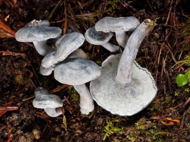 Albatrellus cinepore crece en grupos de 5 o más cuerpos fructíferos.