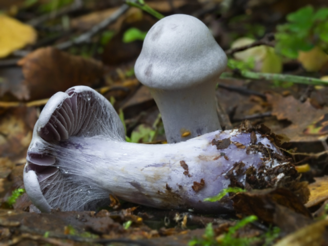 Webcap blanco-violeta crece en pequeños grupos