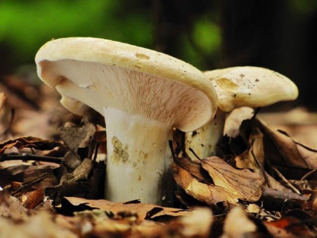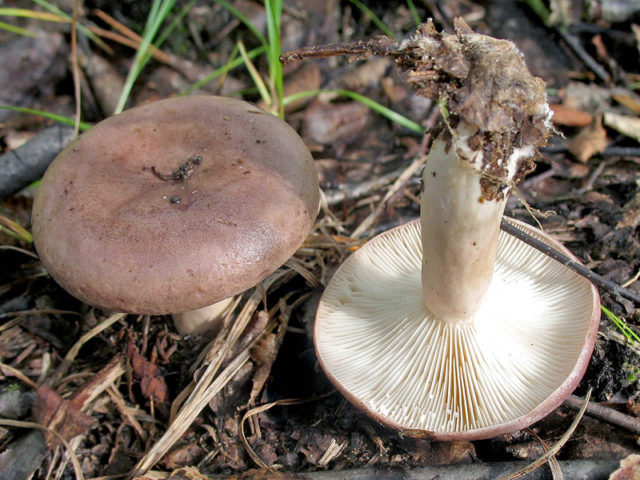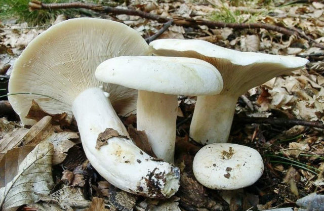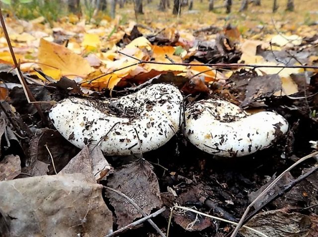 Otro falso gemelo también crece en plantaciones mixtas, generalmente cerca de robles o pinos. En apariencia, color y aroma, copia completamente a un verdadero lechero. Algunas diferencias son que no hay flecos en los bordes de la tapa y la pulpa de la rotura no emite un jugo lechoso amargo. El bulto blanco es comestible.