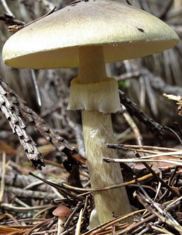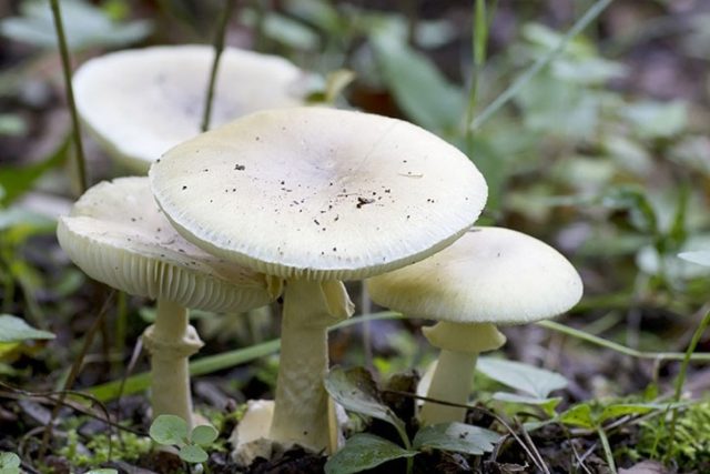 Incluso puedes confundir a un verdadero lechero con una seta venenosa pálida. El hongo mortal tiene una tapa ancha aplanada con placas debajo, de color blanco o lechoso-verdoso y lechoso-amarillento.