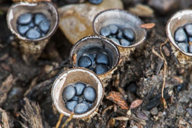 - Estiércol - se refiere a los representantes no comestibles del reino forestal. El hongo es de tamaño miniatura, se asemeja a un vaso o un cono invertido.Prefiere crecer en suelo fértil, que se encuentra en montones de estiércol. El hongo se diferencia del vaso de Oll en tamaño, peridiolims más oscuros, que no se desvanecen cuando se secan. Prefiere la humedad alta, por lo que se puede encontrar en familias numerosas a principios de primavera y finales de otoño. Las enzimas de este habitante del bosque se utilizan para fabricar papel y reciclar pasto y paja. El cuerpo de la fruta contiene antioxidantes, en la medicina popular se usa para el dolor epigástrico.