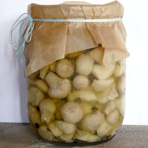 Otra forma de conservar los impermeables en forma de pera para uso futuro es enlatarlos en un adobo. Estos hongos son una excelente preparación casera, que se puede degustar a los 4-5 días.