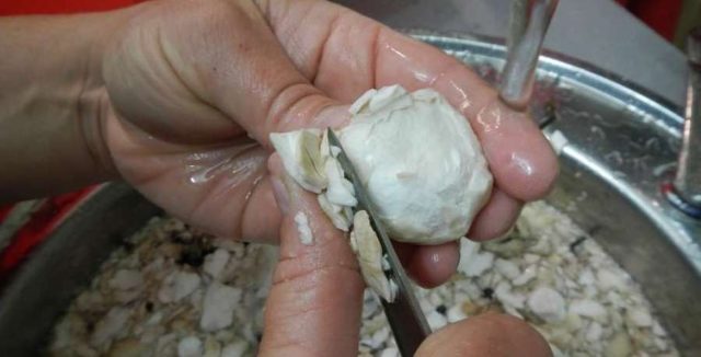 - A continuación, debe limpiar los impermeables de la piel superior. Debe recogerse con un cuchillo conveniente y retirarse con cuidado.