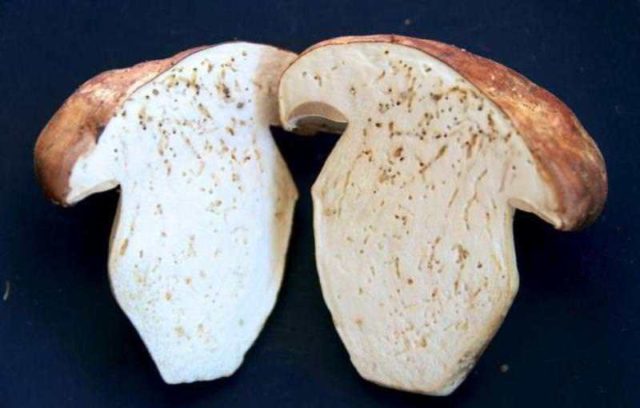 Determinar si el boletus tiene gusanos o no es bastante sencillo. Solo necesitas mirar su punto de corte. La presencia de parásitos se evidenciará por numerosos agujeros redondos, hoyos y pasajes, que son perfectamente visibles en el corte.