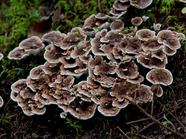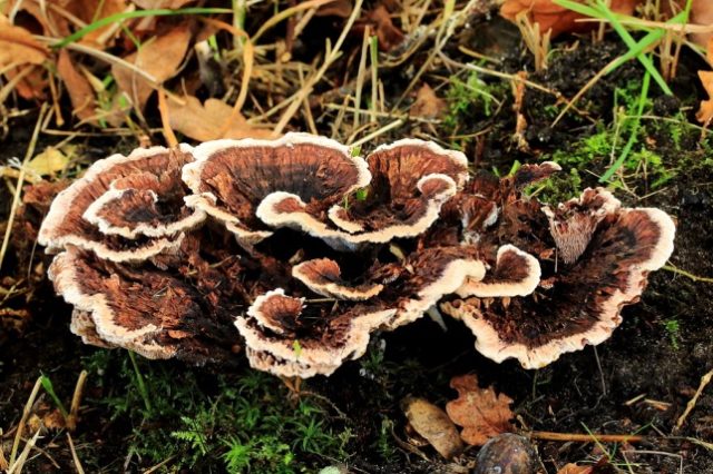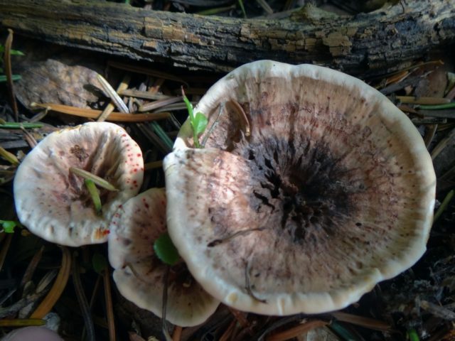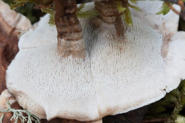 Las bases de muchos hongos crecen junto con los cuerpos frutales vecinos, contienen agujas, musgo y ramitas pequeñas.