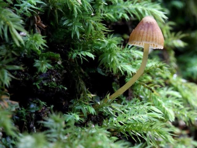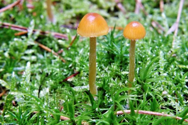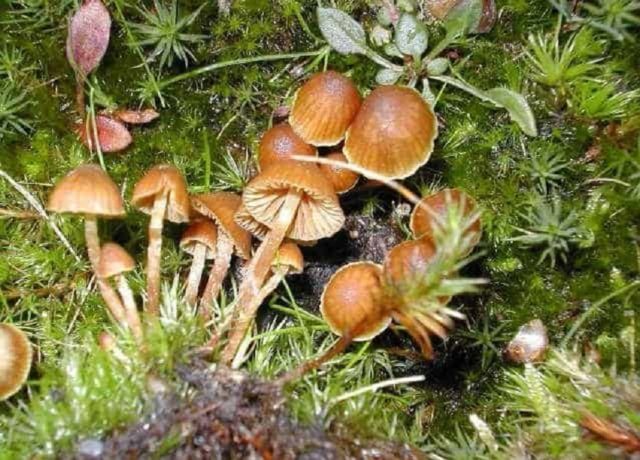 Galerina mossy crece en familias, lo que facilita el reconocimiento del hongo