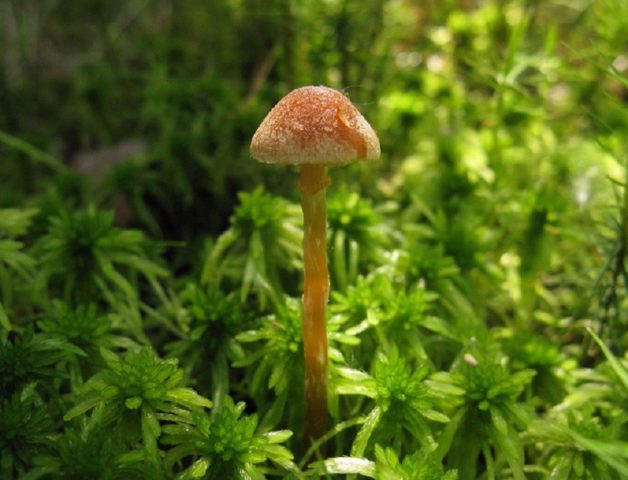 - Sombrero. El diámetro máximo es de 1,5 cm. Cuando el hongo es joven, es cónico. Luego se abre y se vuelve como un hemisferio convexo. El color varía de amarillo claro a marrón. En ejemplares más viejos, el sombrero pierde su jugosidad. Se vuelve seco y descolorido, adquiere un tono cremoso oscuro. Los bordes de la tapa son transparentes, la superficie es higrófona.