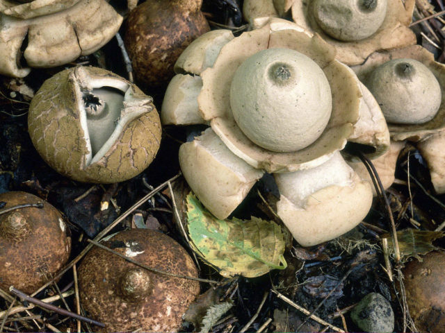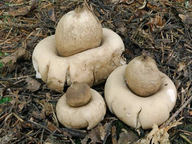 A diferencia del geastrum, el triple tiene un tono más oscuro. Además, la capa exterior, después de la rotura, se dobla casi hasta el tallo. Al igual que el triple geastrum, no es comestible.