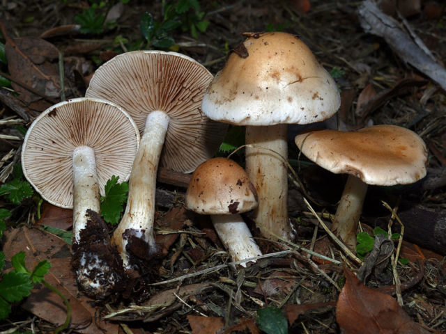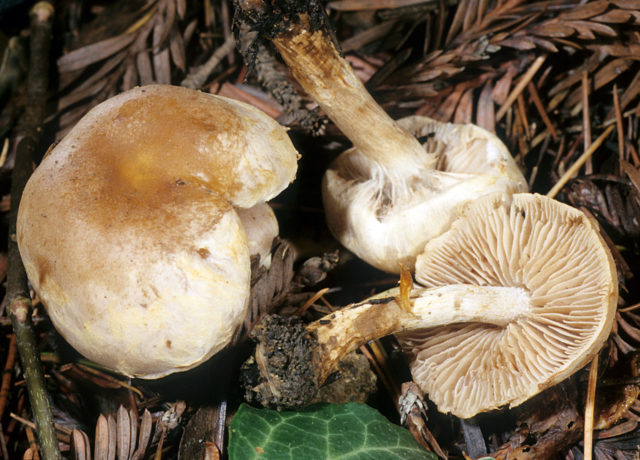 - Hebeloma mostaza - un hongo venenoso, el uso en alimentos conduce a la intoxicación.Un par de horas después del consumo, aparecen los primeros signos: náuseas, dolor abdominal, vómitos y diarrea. Se diferencia del hebeloma ceñido por el gran tamaño de los cuerpos frutales. Así, el sombrero de doble llega hasta los 15 cm. El color varía del beige al marrón rojizo con los bordes más claros. La superficie es brillante, pegajosa al tacto. La pata es cilíndrica, de unos 15 cm de largo, de sabor y olor muy similar a la especie en cuestión. Crece en varios bosques dentro de climas templados.