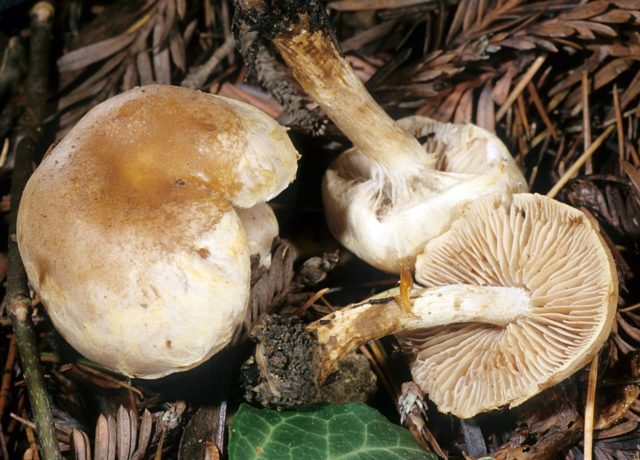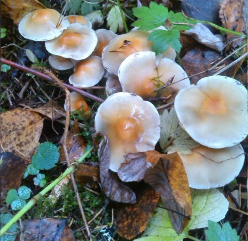 - Hebeloma pegajoso - una muestra no comestible. El doble se puede reconocer por el sombrero, cuyo tamaño a veces alcanza los 10 cm. El color es marrón claro o amarillento, pero a veces hay ejemplares con una superficie de ladrillo o rojo. Es pegajoso y viscoso al tacto, como amante del carbón, pero con la edad se vuelve seco y suave.Además, una característica distintiva es el raro olor desagradable de la pulpa.