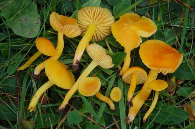 - Cera Hygrocybe - Pertenece al grupo de los hongos no comestibles. Más común en Europa y América del Norte. Se diferencia del higróforo del loro en el pequeño tamaño de los cuerpos frutales. Entonces, el sombrero del doble tiene un diámetro de solo 1 a 4 cm, que está pintado en tonos naranja amarillentos.