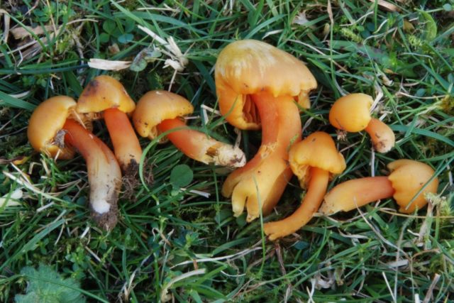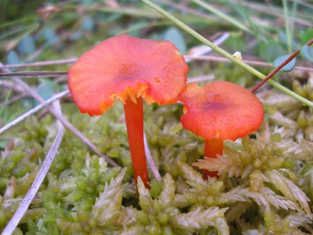 Hygrocybe cinnabar-red es un cuerpo fructífero laminar de tamaño pequeño del género Hygrocybe, en el que hay representantes condicionalmente comestibles y venenosos. En micología, la especie se llama: Hygrocybe miniata o Hygrophorus estrangulado, o Agaricus, miniatus, Hygrophorus estrangula.