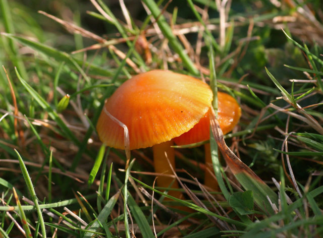 Los hongos pequeños y brillantes se encuentran en lugares húmedos, a veces secos: