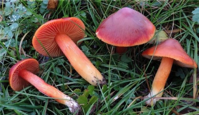 prado tiene un casquete plano-cónico que mide de 2 a 10 cm, naranja. La superficie es resbaladiza con mucha humedad. La pierna es frágil, fibrosa. Las placas son ligeramente más ligeras que toda la superficie. El color del polvo de esporas es blanco. Ocurre en los claros de los prados, en los bordes del bosque, da frutos de septiembre a noviembre. Se refiere a especímenes comestibles condicionalmente;