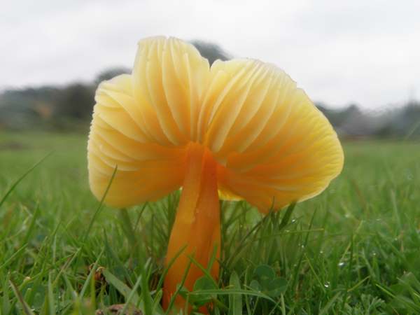 El color de la parte superior del cuerpo fructífero es limón o naranja brillante.