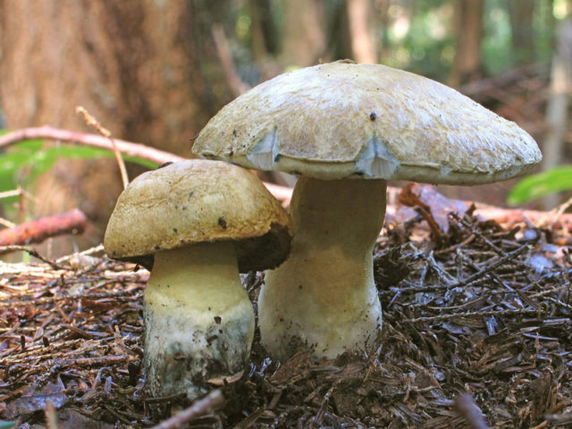 Gyroporus azul (popularmente - "hematoma"). Comestible. Una característica es la capacidad de la pulpa de adquirir rápidamente un color azul intenso en una rotura o corte.