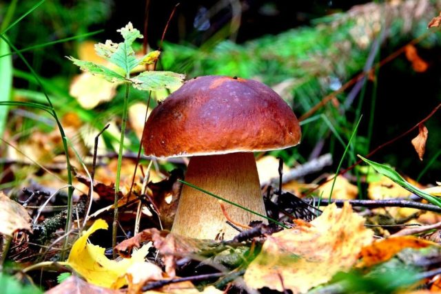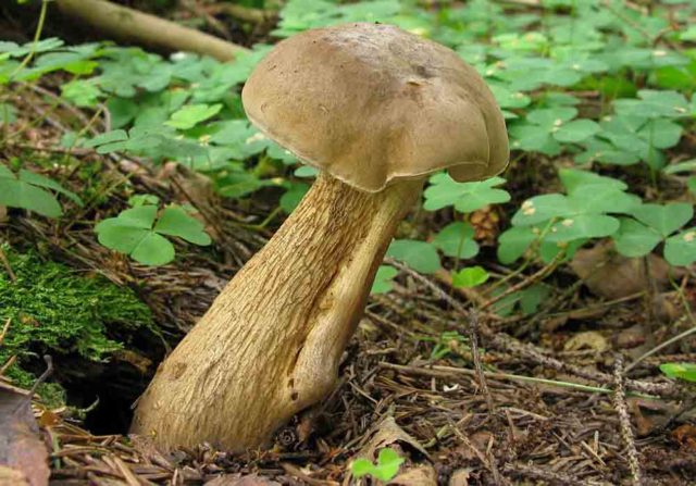 Porcini. Comestible. Se distingue por una pierna carnosa en forma de maza de un color de malla desigual.