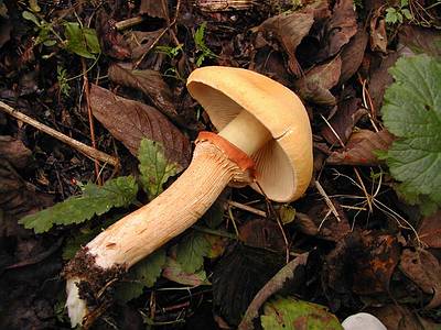 La pata del representante de la especie es recta, se puede engrosar hacia el fondo. Altura de 5 a 25 cm La superficie de la pata, al igual que las tapas, es mate, granulada. Mientras que el espécimen es joven, el tallo del tallo se convierte suavemente en un velo privado. El color del tronco no difiere y tiene un color amarillo dorado. A medida que crece el cuerpo del hongo, de la colcha queda un anillo ancho que cuelga del mismo color, posiblemente un poco más oscuro. Por encima del anillo, el tallo del pedúnculo es liso, de color similar a las placas, a veces con escamas blanquecinas o amarillentas. En especímenes más viejos, el anillo disminuye. La pierna se oscurece con el tiempo y adquiere un tinte marrón oxidado.