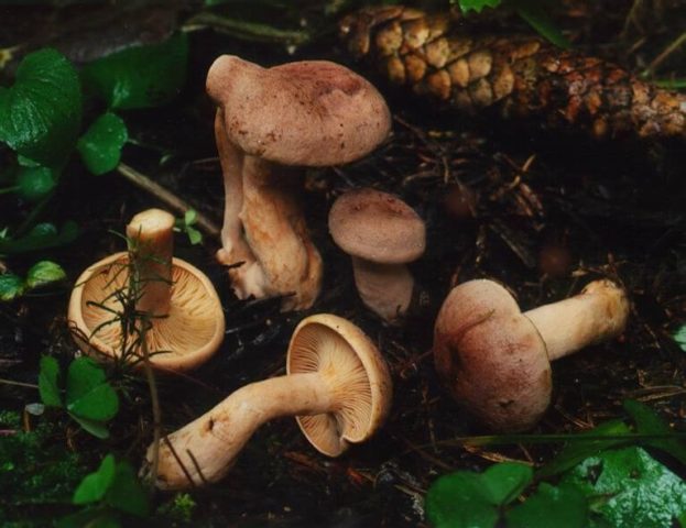 Esta especie comestible de lecheros es de color similar a una carga de amargo, pero prefiere crecer en bosques de coníferas pantanosos.