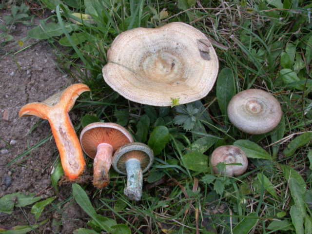 - Lactarius chelidonium - Especie comestible, generalmente crece debajo de árboles coníferos. La tapa azulada tiene un tinte gris o amarillo, más pronunciado a lo largo del borde y en el tallo. Jugo lechoso de amarillo a marrón.