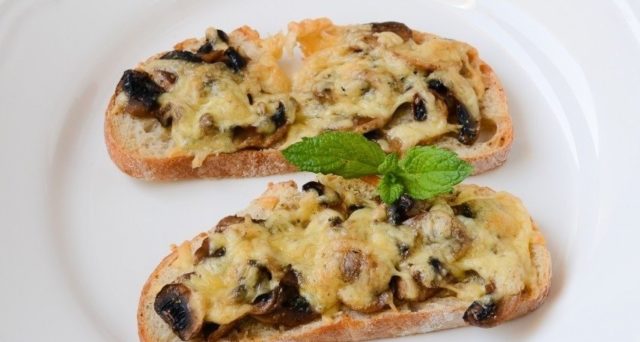 - Pan cocido en tostadora, untado con mantequilla. Coloque el mokruh frito en una capa fina, espolvoree con queso y hierbas por encima.