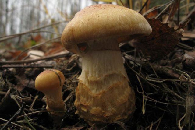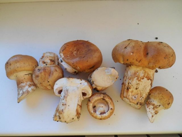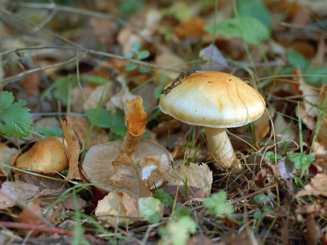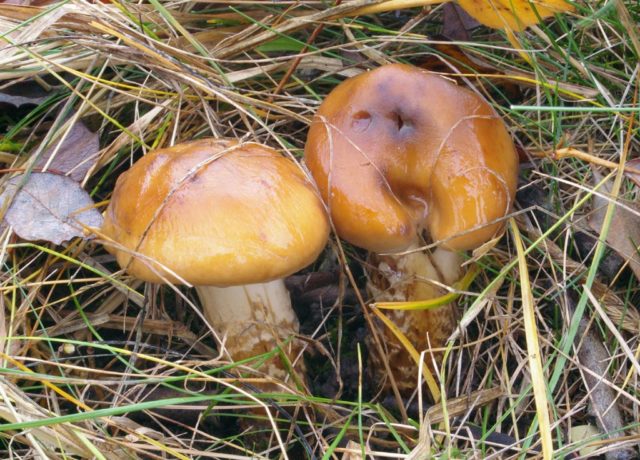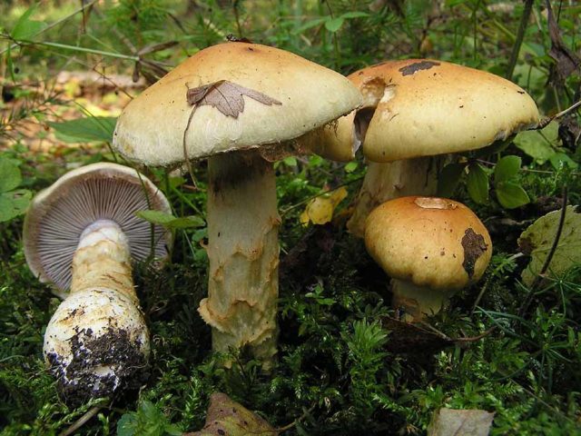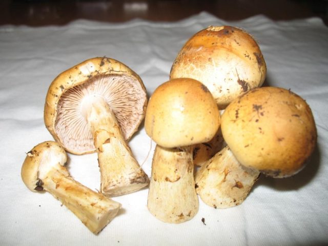 Esta especie tiene una gorra amarilla con un tinte oliva o pardusco, por lo que se asemeja a un grano amarillo. Puede distinguir los hongos por sus patas; en una especie común, tiene un ligero brillo púrpura.
