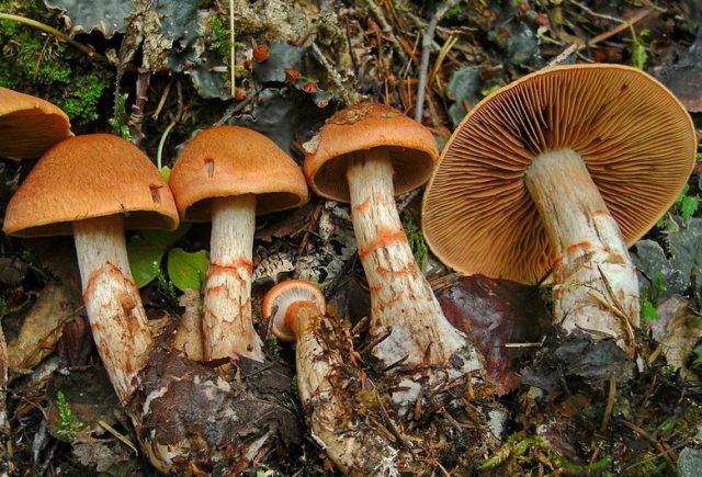 El más peligroso de los dobles de la telaraña amarilla puede considerarse la telaraña más hermosa. A pesar de su atractivo nombre, este hongo es venenoso e inadecuado para el consumo humano. Puede distinguirlo de la foto y descripción del hongo telaraña amarilla por el color rojo anaranjado del gorro y la presencia de pequeñas escamas.