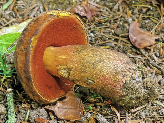En la foto de las setas de roble, se nota que la pata del roble Kele mide hasta 5 cm de circunferencia y hasta 10 cm de altura, con un engrosamiento amarillento en la base. No hay patrón de malla en la pierna, pero puede haber escamas rojizas. Cuando se rompe y se presiona, la pulpa de la tapa y la pata se vuelve azul. Poddubnik está clasificado como comestible, pero requiere un tratamiento térmico antes de su uso.