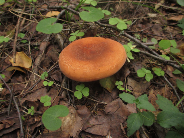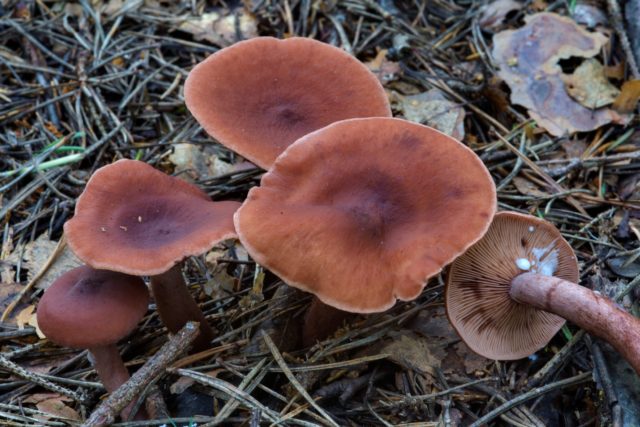 Esta especie rara vez cae en las cestas de los recolectores de setas debido a su reducido número. Crece cerca de abedules, avellanos y robles. El diámetro de su tapa puede alcanzar los 16 cm. La superficie tiene un tinte marrón rojizo. Es seco, mate, ligeramente aterciopelado, pero con mucha humedad se vuelve pegajoso, como muchos hongos de leche. La pierna alcanza una altura de 10 cm, su grosor es de unos 3 cm.