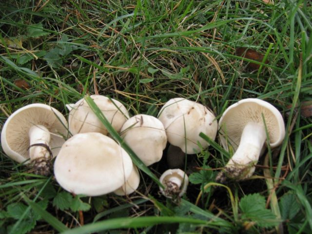 La fila de mayo, que crece en el campo o en el jardín, es similar en apariencia a la variedad blanca, cuya tapa es redondeada-convexa en los ejemplares jóvenes y se vuelve plana con la edad. El venenoso ryadovka white tiene un sabor picante y un olor acre y desagradable. Crece desde agosto hasta finales de octubre.