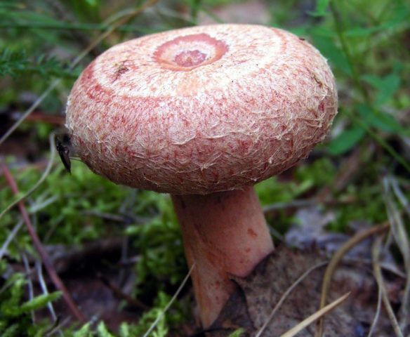 Es bastante difícil confundir un hongo rosado con un hongo, pero a veces las diferencias entre los hongos adultos son mínimas.El lobo tiene un gorro grande y denso de hasta 12 cm de diámetro, convexo en las especies jóvenes y plano en los adultos. Hay una pequeña depresión en el centro de la gorra, los bordes se vuelven hacia adentro y son pubescentes, y los círculos concéntricos divergen a lo largo de la superficie de la gorra. El color del hongo es similar al de la camelina, pero más pálido: la ola suele ser, de acuerdo con su nombre, rosa claro o rosa grisáceo, y la superficie del sombrero es viscosa. Desde abajo, el hongo se cubre con placas frecuentes de color blanco o rosado que descienden a lo largo de la pierna.
