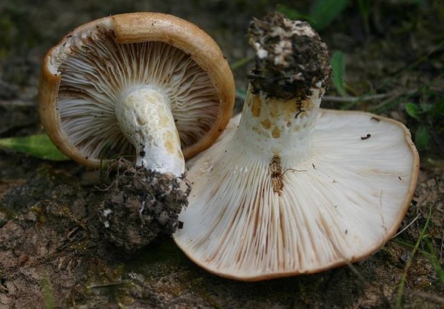 - cuando se presiona, aparecen manchas azuladas en la superficie de la pierna de apariencia azulada, y aparece un jugo blanquecino en los cortes, que, bajo la influencia del aire, se vuelve azul violeta;