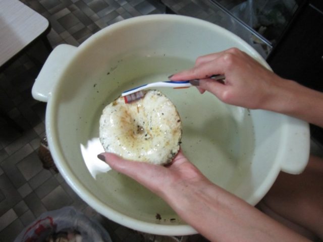 Las pilas blancas recolectadas deben procesarse lo antes posible, de lo contrario se secarán y se volverán quebradizas. Como regla general, siempre hay una gran cantidad de restos de plantas y tierra en las tapas, por lo que se necesita mucho tiempo y lavar a fondo cada espécimen. Muchos recolectores de hongos usan un cepillo de dientes viejo de cerdas duras para este propósito.