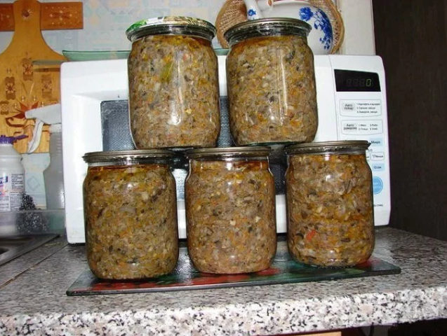 Receta de caviar de setas de suelo para el invierno con berenjenas.