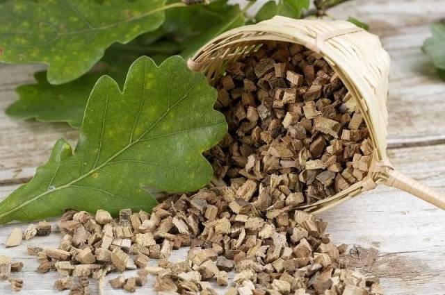 Una decocción de corteza de roble se prepara de la siguiente manera: tomar 100 g de corteza de roble y 3 litros de agua, poner al fuego, esperar a que hierva, reducir el gas y hervir a fuego lento durante 1 hora. Cuando el líquido se evapora, el volumen vuelve al original. El caldo terminado se enfría y el suelo se riega alrededor del árbol;