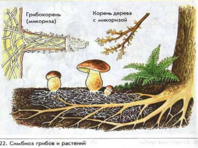 Si el árbol carece de nutrientes del suelo, entonces proporciona nutrición para el micelio. El micelio crece, penetra en las raíces del árbol, lo suple con sales minerales disueltas. A cambio, recibe carbohidratos y puede formar un cuerpo fructífero o un hongo.