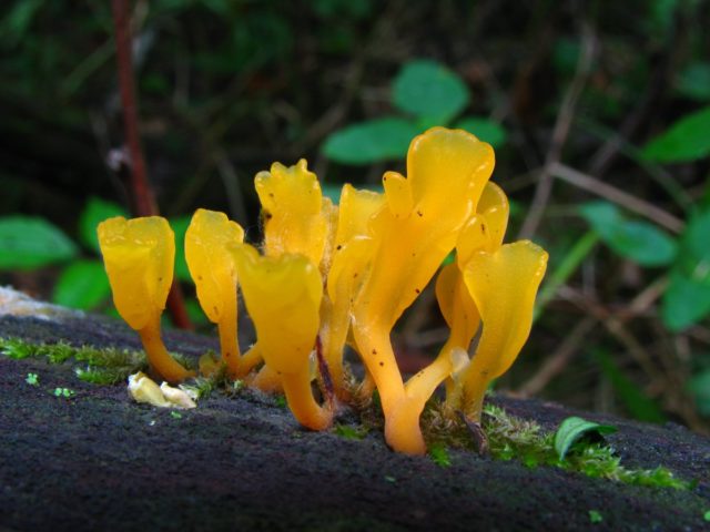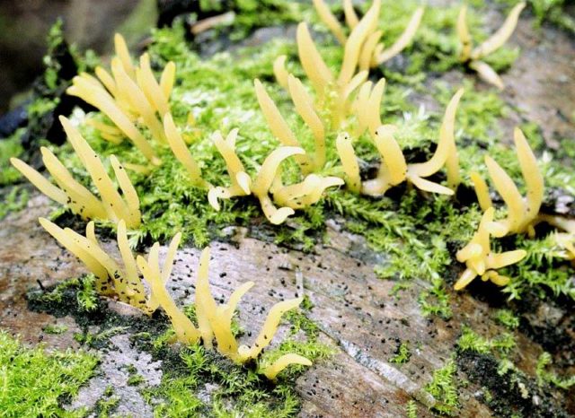- Cuernos de ciervo - Especies condicionalmente comestibles que crecen en pequeños grupos sobre madera podrida. El hongo se puede reconocer por su color amarillo brillante y la forma de rama del cuerpo fructífero. Comienza a fructificar desde julio hasta finales de septiembre. A pesar de la falta de sabor y olor, muchos recolectores de hongos comen esta especie. Se pueden hervir, guisar, secar y freír.¡Importante! Debido a su color brillante, los chefs europeos hierven cuernos de ciervo y los utilizan como decoración para platos fríos.