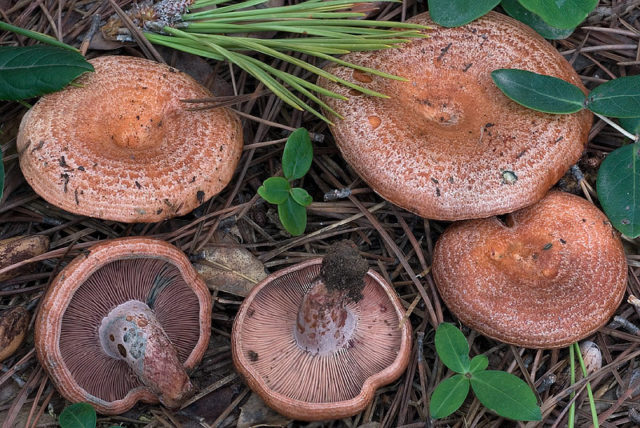 - Rojo. La especie se puede encontrar en los bosques de pinos y abetos de la región de Kirov. El hongo tiene una gorra roja-rosada o anaranjada, con bordes caídos y un pequeño hoyuelo en el centro. La pulpa de color rosa claro con manchas burdeos, cuando se daña, produce un jugo lechoso rojizo, que se oscurece con el tiempo. La pierna es fuerte, carnosa.