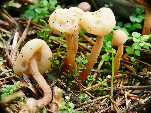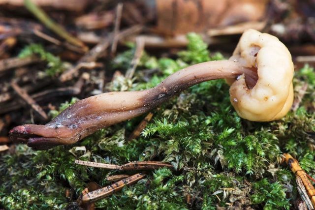 - Dudoso - una muestra no comestible. Se puede reconocer por su casquete pequeño, desigual y abultado. La piel de color limón claro, crema o rojizo a veces está cubierta de manchas oscuras. La superficie es opaca, pero en un día lluvioso se vuelve brillante y se cubre con una capa mucosa. La pata curva es aplanada, mide hasta 5 cm de largo y la pulpa fibrosa desprende un aroma de almendra. Crece sobre un sustrato de coníferas, da frutos desde julio hasta la primera helada. La especie es rara, rara vez se encuentra en los bosques rusos.